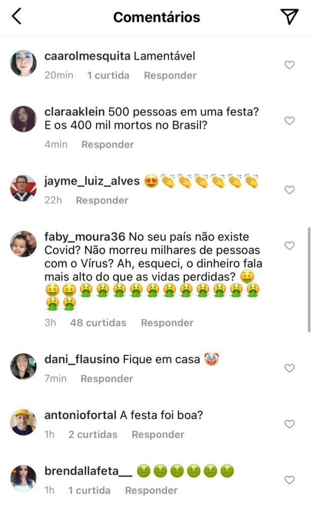 Dona da empresa responsável pelo cerimonial da festa, a famosa promoter Carol Sampaio acabou sendo alvo de ataques em suas redes sociais por estar ligada a um evento dessa magnitude enquanto a crise sanitária segue fora de controle.