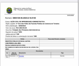 O Ministério Público alegou em sua ação que o prefeito, juntamente com o secretário de Educação, Nouga Cardoso, deveria ser afastado devido a compra de 100 mil exemplares de livros.