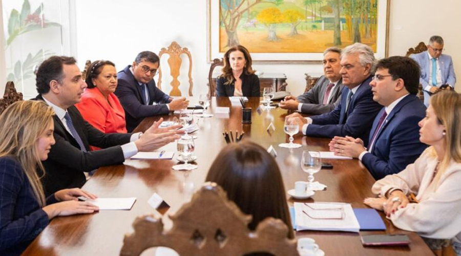 O governador Rafael Fonteles participou nesta terça-feira (14) de audiência com o Ministro da Fazenda, Fernando Haddad, e com os presidentes do Senado e da Câmara Federal, o senador Rodrigo Pacheco e o deputado Arthur Lira. Na pauta, o governador tratou da recomposição das perdas ocorridas em função das mudanças tributárias do ano de 2022, que surpreendeu a todos os estados.