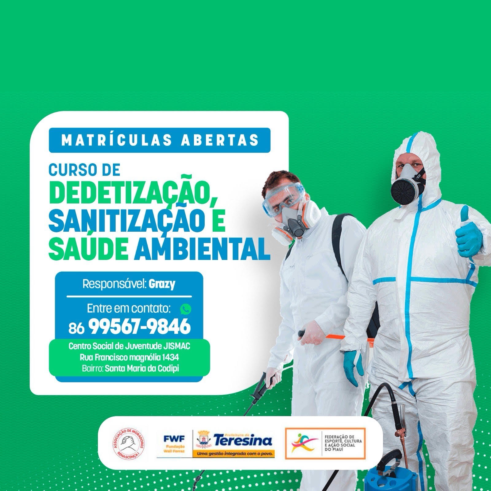A Prefeitura de Teresina, por meio da Fundação Wall Ferraz (FWF) e em parceria com a Federação de Esporte Cultura e Ação Social (FECASP), está com inscrições abertas para os cursos gratuitos de “Dedetização, sanitização e saúde ambiental” no bairro Santa Maria da Codipi e “Design de sobrancelhas e maquiagem” no bairro Mafrense, ambos na zona Norte.