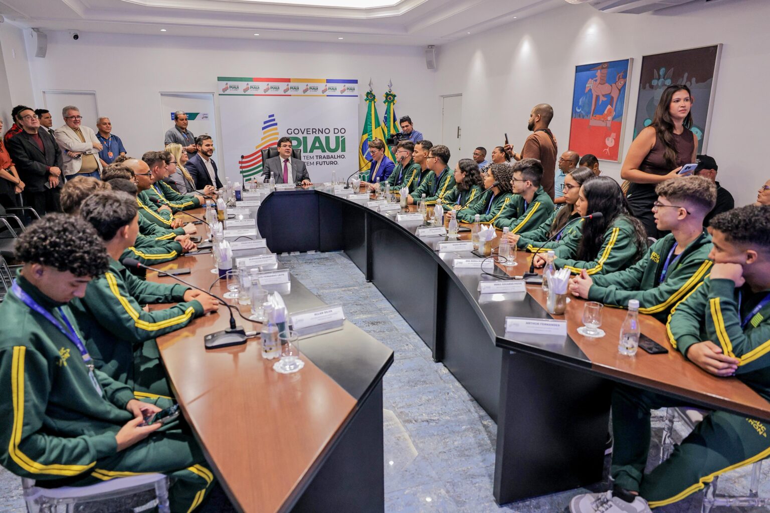 Nesta sexta-feira (29), 15 estudantes e 3 professores da rede pública estadual seguiram para Berlim, na Alemanha, para uma experiência de intercâmbio promovida pelo Governo do Estado, através do Seduckathon 2025. Antes disso, eles foram recebidos pelo governador Rafael no Palácio de Karnak, em Teresina, junto de familiares, para apresentação do cronograma da viagem e orientações sobre a missão internacional.