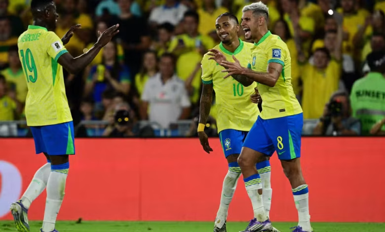 A Seleção Brasileira jogou com Alisson, Wesley, Gabriel Magalhães, Marquinhos, Douglas Santos, Casemiro (Andrey Santos), Bruno Guimarães, Raphinha (Richarlison), Estêvão (Luiz Henrique), Gabriel Martinelli (Kaio Jorge) e João Pedro (Paquetá).