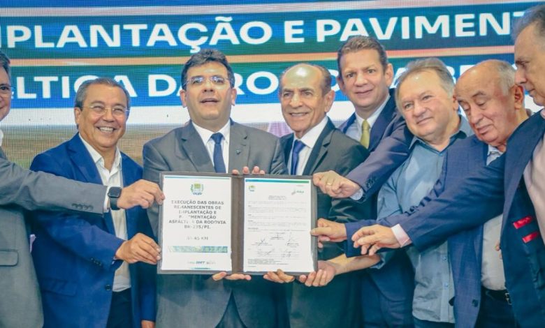 O governador Rafael Fonteles assinou, nesta sexta-feira (13), a ordem de serviço para pavimentação asfáltica de trechos remanescentes da rodovia BR-235, entre a divisa do Piauí com a Bahia e com o Maranhão, no sul do estado. Com investimentos de R$ 375 milhões, a obra encurtará em 300 km a distância entre as cidades de Caracol e Bom Jesus, essencial para o desenvolvimento do agronegócio na região do Matopiba e para o turismo. O prazo para conclusão é de 24 meses.